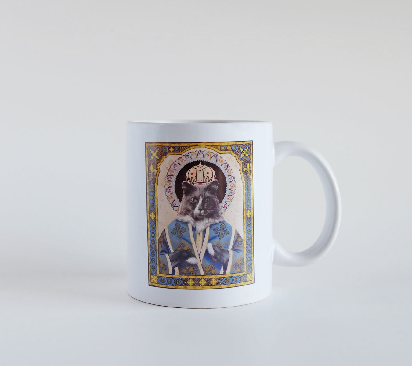 In this icon he is dressed in the vestments of the Patriarch of Kyiv, reflecting both his divine nature and Ukrainian heritage. The icon is, and will remain mine; but the coffee mug with his image on both sides can be yours forever!